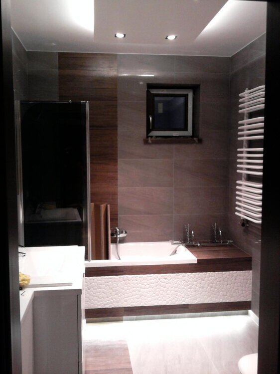 te brązowe płytki to arkwood brown, jesli dobrze pamietam. Nie są tak popularne i dąstępne jak np. Paradyż, ale nam się spodobały:) Justa - płytki i ogólnie cała łazienka b. ładna, rzeczywiście te kinkiety nie bardzo pasują do stylu łazienki, choć same w sobie są ładne, może bardziej pasowałoby tu coś w stylu glamur? jakieś z czarnymi kloszami i ozdobnymi kryształkami?