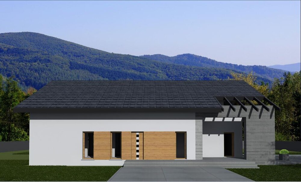 Witaj Toaleta będzie pod schodami, więc w miarę ok. Co do elewacji to inne będą tylko okna. a ta betonowa belka to szalowana będzie deskami by oddać strukturę drewna w betonie. Projekt jest na tyle sprytny że ta belka i te krokwie to tylko forma a nie element konstrukcji więc w żaden sposób nie połączone technologicznie z budynkiem. -