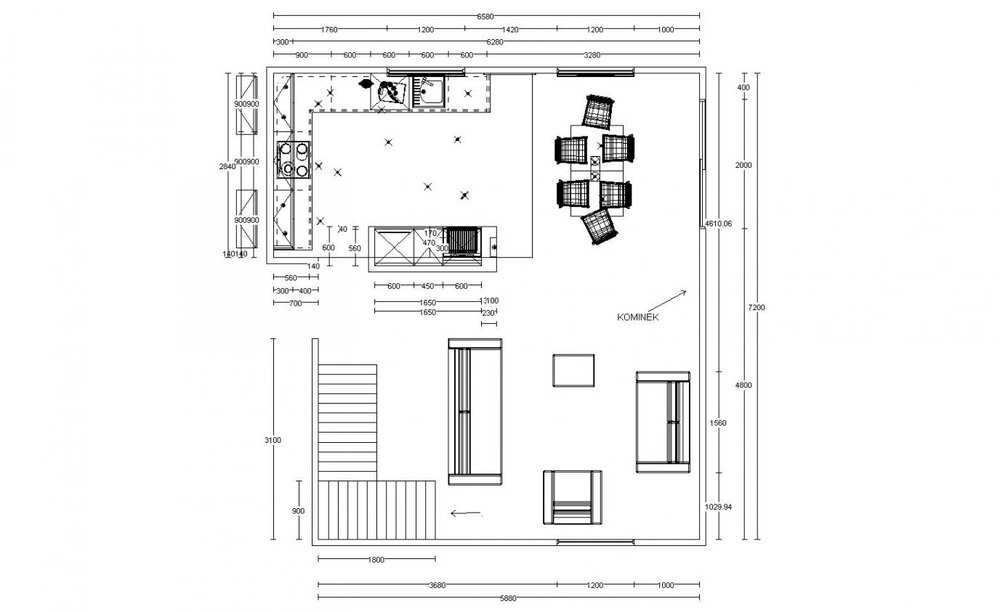 Witam, niedawno kupiłem dom, zabrałem się za zaprojektowanie kuchni i jadalni. Jest to kuchnia + salon + jadalnia. Proszę o opinie i sugestie co możnaby zmienić, największym mankamentem jest mało miejsca między barem a stołem jadalnianym. Fajnie byłoby też zabudować mikrofalę. Może lepiej dobudować gdzieś scianę? Ścianka na środku pomieszczenia w rzeczywistości jest słupem 23x23cm (od strony wyjścia tarasowego) którego nie można ruszyć. Załączam 2 opcje (jedna z barem otwartym, druga z zamkniętym). Z góry dzięki za wszelkie sugestie.- 4 470 odpowiedzi