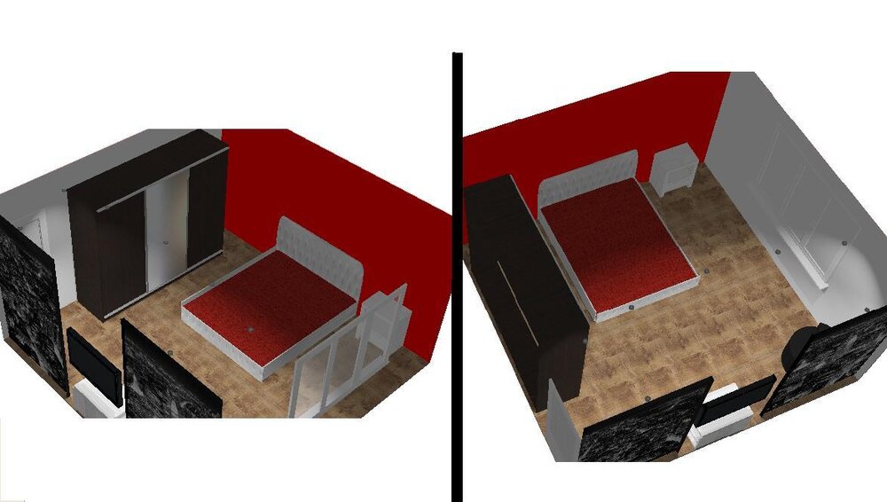 witam ponownie, jak na drugiej części meczu projekt po czesci zrealizowany zostały jeszcze "detale" i zwracam się z nimi do was konkretnie chodzi mi o zasłonę, firankę, narzuta i zagospodarowanie ściany nad łóżkiem. Ma ktoś może jakiś swój własny pomysł? Lecz główne moje pytanie to jaki odcień czerwonego? ..do narzuty i zasłon (będą szyte pod moj wymysł, nic nie moglem znaleźć gotowego) podoba mi sie jasna krwista czerwien lecz sciane mam ciemny czerwony (energia z dekoral), wiec jest dylemat... wizualka przedstawia moj pomysł -