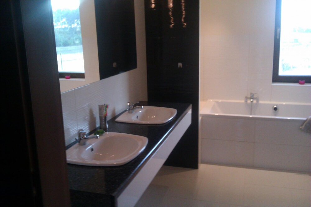 tynki w łazienkach, pralni, garażu - cement w pokojach, holach - gips -