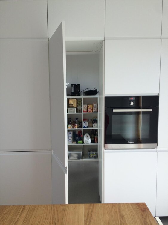 7. Maciejka 2, Aga2183, reszty nie ma aż*tak wiele, nadal brakuje okapu i oświetlenia, cokołów, ale meble w komplecie. Uwaga, jedna z szafek, na lewo od piekarnika, jest tak naprawdę sekretnym przejściem do spiżarni Dwa fronty złączone od tyłu szyną. Spiżarni z tyłu nie widać, a jest