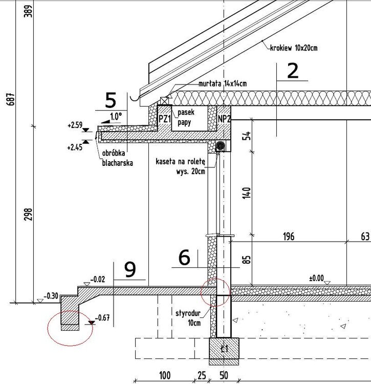 Mam problem, taras zaprojektowano w domu tak, że chyba będzie mostek cieplny. W ogóle to zastanawiam się czy taras nie powinien mieć wspólnych wylanych ław fundamentowych z domem? Czy taki taras jak na rysunku nie dość, że będzie mostkiem to może być niestabilny?