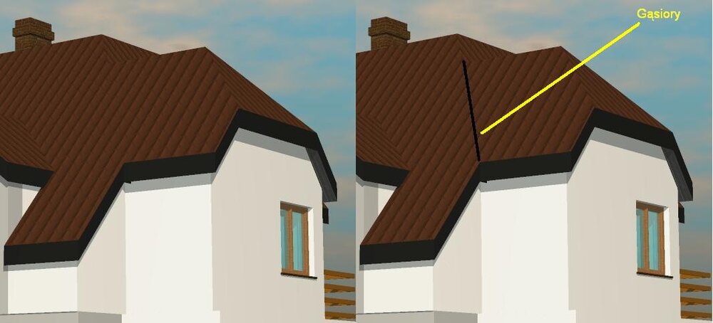 dobudowuję daszek do istniejącego dachu z niewiadomych mi przyczyn dekarze z jednej strony nie połączyli istniejącego dachu z nowym w jednej linii tylko będzie linia gąsiorów. (krokwię narożną) i teraz boje się ze będzie mi przez to ciekło przy większych opadach jak to uszczelnić ? wg mnie woda z nowodobudowanej części bedzie wpływać pod gąsiory na krokwi narożnej. a tak to wygląda przed zmianą taki był projekt tak miało wyglądać i tak wygląda
