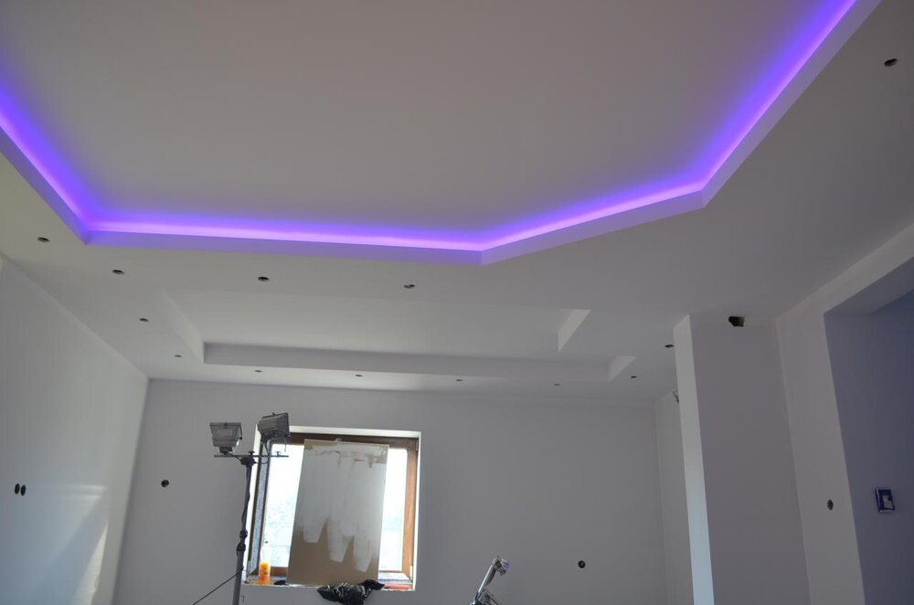 Dzięki temu forum i innych informacjom mój pierwszy sufit led. Półka 8-6cm Duże pomieszczenie było i wyglada dosyć dobrze