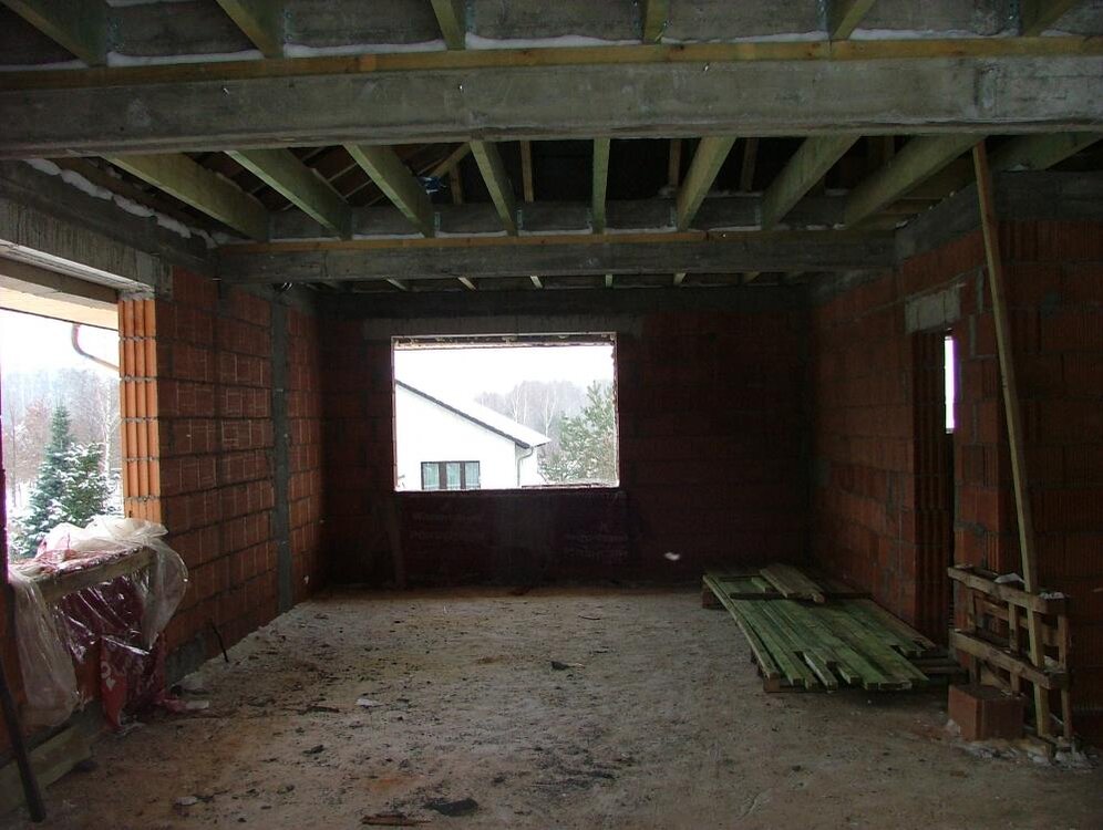 Witam. Obecznie zakladam dach, i jesli pogoda pozwoli juz w styczniu dodam nowe zdjecia. Będę się mógł pochwalić jak zadaszyłem taras nad garażem i jak wykonałem wiatę za garażem. Ogólnie dom wyglada na bardzo duzy, ale nie jest to az tak wielki kolos. W środku w sam raz! Pokoje ustawne i dość duze. Salon mógłby być troszkę większy, ponieważ jak wydzieliłem scianami działowymi kuchnie i sień to troszkę sie to wszystko kurczy. Ale ogólnie bardzo dobrze. Okna wszędzie duże i bardzo przestronne. (będę dawał wszędzie 3 szyby). Co do postu który był poruszany odnosnie kolejnego projektu z wejsciem do Łazienki/WC z salonu, to odpowiem, że w niczym to nie przyszkadza. Co maja powiedziec Ci ktorzy mieszkaja w bloku i maja mieszkanie tak duze jak salon w projekcie "HELIOS"? Tam dopiero maja ubikacje zaraz obok pokojow, kuchni itd. Tam gdzie jedzą i tam gdzie śpią Osobiście byłem u znajomych ktorzy mieszkaja juz w podobnym domu i maja tak WZ z wejsciem z salonu i jest bardzo fajnie i funkcjonalnie. Na etapie budowy, doprojektowałem malutką piwnice pod schodami, tzn. troszke zadołowałęm ten zaprojektowany schowek i wyszła fajna spiżareczka/piwniczka na produkty spożywcze.