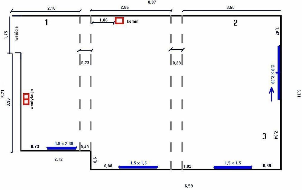Witam, poczytałam co nieco o dolocie powietrza, ale że jestem laikiem to proszę o doradztwo. Na rysuneczku 01 zaznaczyłam gdzie kominek i jak chcemy poprowadzić rurę dolotu powietrza do kominka (kolor zielony). Rysunek 02 przedstawia jak to realnie będzie biegło, nie mam aktualnego zdjęcia salonu, więc jakieś stare wygrzebałam. Dodam, że: kominek ma być tylko kominkiem, fajnie wyglądać i dawać klimat, nie będzie dogrzewał pomieszczeń itp Teraz pytania: 1. Czy rura 150mm będzie wystarczająca? Czy należny zamontować o szerszej średnicy? 2. .Czy należy ją ocieplać? 3. Jak głęboko zakopać rurę? Wiem, że ma być spadek (obecnie jest tam sam piach, wybrany piach pod chudziak, styropian itp) 4. Czy długość ponad 6m jest jakąś przeszkodą? 5. Czy jeszcze o czymś nie wiem, zapomniałam Z góry dziękuję za pomoc