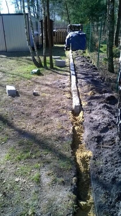 Trochę z innej beczki Dzisiaj korzystając z pięknej pogody postanowiłem wziąć się za realizację na działce jednego z wiosennych projektów ;D Umyślałem sobie żeby od strony północnej, wzdłuż ogrodzenia posadzić rząd tui a żeby było estetyczniej krzaczki będą oddzielone krawężnikami Dzisiaj rano przyjechały do mnie 2 palety granitowych oporników ;D Są śliczne od dawna miałem na nie smaka ;D ale cena była zaporowa :/ 11/12 zł. za sztukę krawężnika o długości 40cm... trochę drogo Jednak udało mi się zdobyć te krawężniki w cenie 6,30zł za sztukę ;D + transport Od 10 rano do 19.30 ciągłej pracy i krawężniki wkopane ;D Poniżej prezentuje efekty z pracy Jak wam się podoba efekt ?? I mam pytanie dla tych którzy znają się na tujach Na fotce nr 1 i 4 widać jak cień pada na obszar gdzie będą sadzone te drzewka. Jak już mówiłem jest to północna część działki. Wiem że tuje lubią słońce ewentualnie półcień a co sądzicie o tej pozycji ? czy drzewka dadzą sobie rade w takim cieniu ??