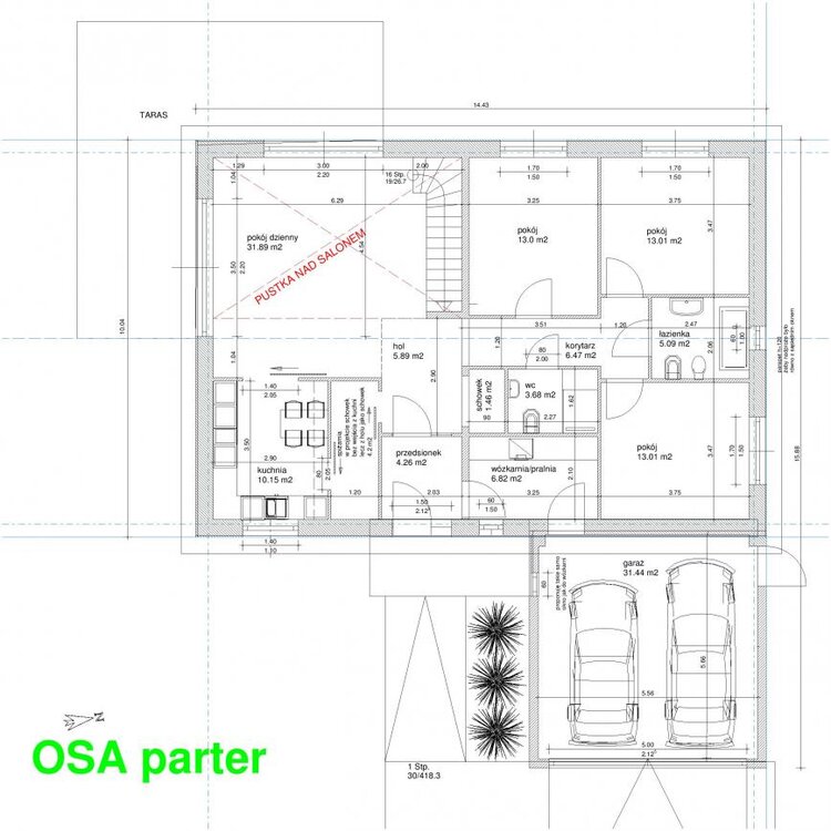 Podejscie kolejne. Trzecie. Moze tym razem sie uda utrzymac dziennik. Od razu wrzucam projekt domu. Projekt indywidualny. Parterowy z antresola. Dom ma byc prosty w budowie, energooszczedny. Usytuowany salonem na poludnie i zachod, czyli tam najwieksze przeszklenia. Napisze co wiem 1. Plyta fundamentowa (25cm XPS'a lub 15 cm XPS'a pod plyta i 10 cm EPS'a na plycie. Moze w takim razie bez EPS'a w garazu. 2. Sciany Silka 24 cm + styro grafitowy 20 cm (0.031 lub 0.030), wiecej nie moge, bo mam ograniczenia powierzchni zabudowy 3. Strop w projekcie Teriva, ale moge zmienic. Zastanawiam sie nad JS, Granord, Smart, Vector. Kusi mnie JS, ale obawiam sie trudnosci w wieszaniu lamp i zyrandoli Chociaz moze ich wcale duzo nie bedzie... 4. Okna fix w wozkarni, lazience 5. Fix + uchylne w sypialniach i kuchni. 6. Salon HS lub normalne FIX + otwierane 7. Pompa ciepla lub gaz ze zbiornika 8. Wentylacja mechaniczna, ale z tego co czytalam to bez odzysku ciepla, a z GWC albo bez GWC, ale z odzyskiem ciepla. 9. Oczywiscie OZC zlece Asolt'owi czekam tylko na konkretny projekt itp. 10. Garaz nieogrzewany. Sciana miedzy garazem, a domem ocieplona 10 cm styro, klej i siatka. 11. Poddasze nieuzytkowe bedzie oddzielone sciana z plyt KG i ocieplone, zeby zimno nie przenikalo na antresole. Ocieplone w podlodze moze ekofiber.