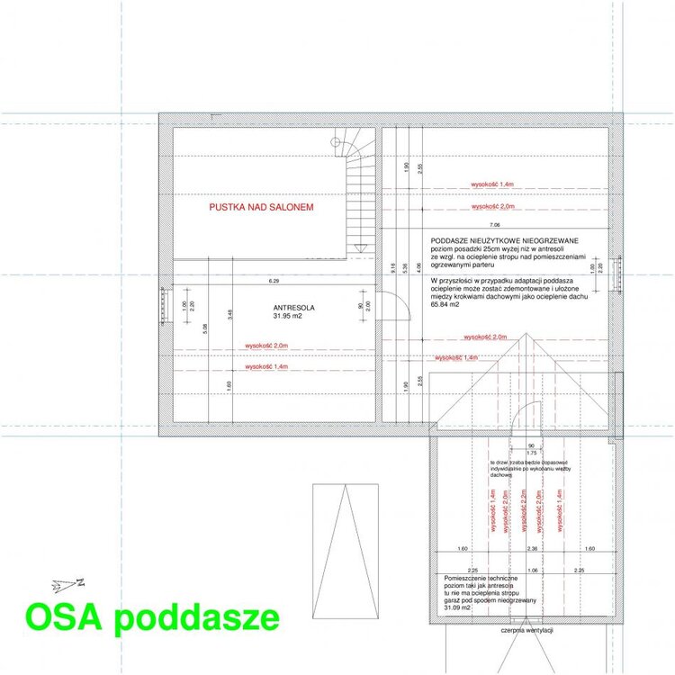 Mam jeszcze jedna koncepcje. Postaram sie dobrze wytlumaczyc. Tam gdzie antresola zastosowac taki wiazar Patrzac od strony poludniowej Czyli mniej wiecej byloby tak Terazniejsza antresola bylaby zabudowana i tam zrobic pomieszczenie gospodarcze. Nieogrzewane. Pompa itp. A tam, gdzie teraz jest poddasze nieuzytkowe zrobic antresole z jednym oknem qysokim balkonowym A nad garazem bez stropu, tylko wiazary, ewentualnie strop drewniany, ale bez dojscia z domu, tylko z garazu lub plaski dach nad garazem. Co myslicie? Byloby lepiej? Poradzcie