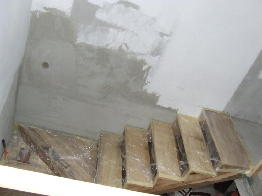 Mamy jeszcze skończoną sypialnię i garderobę, ale tam jest teraz składzik, więc jak uprzątniemy to pokażę. Schody mamy na takim etapie sorry ale są teraz oklejone bo kończymy ściankę