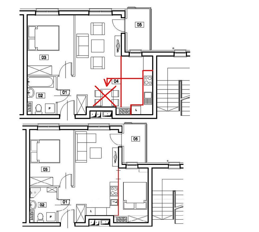 Witam, Jestem w trakcie oczekiwania na kredyt, jednak już się zastanawiam nad urządzeniem mojego pierwszego M Jest to małe mieszkanko od dewelopera (sypialnia, pokój dzienny z aneksem, mały przedpokój i łazienka). Chciałabym przerobić je tak, aby uzyskać jeszcze jeden bardzo mały pokój. Czy jest to możliwe?? Dodam, że budynek już stoi i wszystkie instalacje są już gotowe, nie ma tylko wylewek i tynków. W załączniku dodaję rzut mieszkania. Na czerwono zaznaczyłam to co chcę zrobić. Z góry dziękuję za wszelkie informacje Pozdrawiam