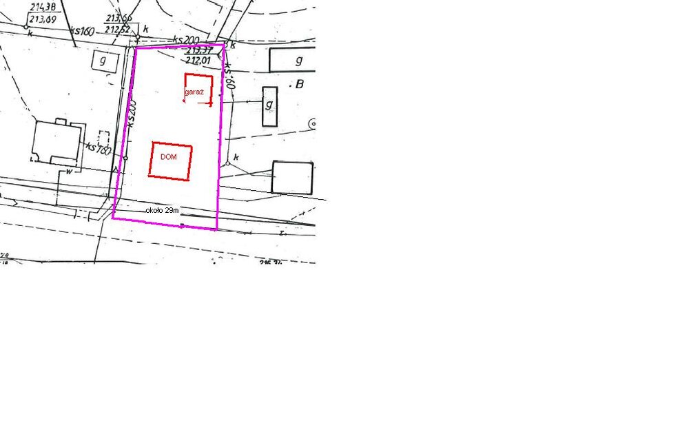 Elfir mocno się zastanawiam nad kominkiem czy będzie mnie poprostu na niego stać, chciałbym bardzo ale... Nie rozumiem z tymi oknami przecież kuchnia salon i jeden pokój jest oświetlony od strony południowej. Przedstawię może moją prymitywną wypocinę, nie mam niestety skanera żeby wkleić teraz oryg. mapkę. Czerwona linia (20m) od krawędzi jezdni to linia na której są wybudowani sąsiedzi(budynki stają powyżej kilkunastu lat) Fioletowa linia (30m) to linia wyznaczona przez gminny plan zagospodarowania przestrzennego, jako linia na której mogę postawić budynek, jest jednak na moje szczeście zapis że za zgodą zarządcy dróg wojewódzkich (w rysunku popełniłem błąd to droga wojewódzka)mogę zmniejszyć tą odległość. Wydaje mi się, że powinni się zgodzić na 25m będę się posiłkował starą zabudową oraz że teren jest pod koniec działki delikatnie na terenach podmokłych. Niebieska krecha to jest rów mielioracyjny, znajduje się on na mojej działce głębokość około 1,4m. Z moich obserwacji zauważyłem że tylko przy oberwaniach chmury rów wypełnia się prawie po brzegi na parę minut, występuje to głównie na wiosnę przy mokrych wiosnach. Ogólnie to prawie przez cały rok jest prawie pusty. Działkę w tym roku delikatnie podniosłem około 50 kamazów ziemi.