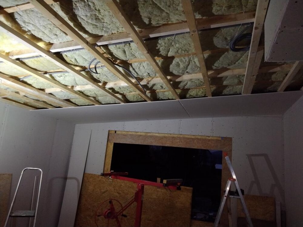 Następnie trzeba było kręcić płyty gk więc zacząłem od płyty przy oknie , potem kolejne i na następnej ścianie wełna i płyty do belek stropowych przykręciłem łatki by potem do nich krzyżowo przykręcić łatki pod płyty gk następnie dałem wełnę w ściany na prawo od miejsca gdzie będzie skrzynka na prąd oraz w miejsca koło otworu na bramę i przykręciłem płyty , To był czwartek 24 listopada a w sobotę koło południa przyjechał elektryk (w końcu) i uzbroił skrzynkę. On jak robił to ja kręciłem łatki do sufitu a trochę tego było. Oczywiście wcześniej musiałem sobie zaznaczyć gdzie te łatki kręcić. Tu postanowiłem że łatki dam co 43,3cm. Zostało mi sporo wkrętów na 20cm (tych co miałem do kołkowania styro) więc je wykorzystałem do kręcenia łatek. Trochę długie ale jakoś poszło.- 630 odpowiedzi