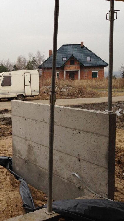 Balto, dziękuję za wyjaśnienia zalecana głębokość fundamentu u mnie to 80 cm, będziemy wibrować Robiłem rozeznanie w gotowych płytach ale koszt 1m2 takiej płyty przy ilości mojego ogrodzenia jest przygniatający. Wylewając wieńce domu robiliśmy dekoracyjna ściankę przy wejściu do domu. Miała docelowo być obłożona drewnem dlatego nikt się specjalnie nad nią nie zastanawiał. Oszalowana zwykłymi starymi płytami i ogólnie potraktowana bez szczególnej pieszczoty. Wyszła tak zakładam że z nowymi szalunkami i założeniem że dążymy do jeszcze lepszego efektu będzie git. Dodatkowo różnica w wysokości krańców działki dochodzi do 1 metra, dlatego łatwiej nam to będzie zgubić lanym betonem niż płytami. Fundament sugerujesz wyłożyć folią i w to lać ławy ? Czy później dwukrotnie dysperbit wystarczy ? ( bo papy nie będzie jak rozwinąć przez zbrojenia wychodzące z ławy fundamentowej ) Przez impregnacje masz na myśli zabezpieczenie płynem, który zabezpiecza beton przed wodą? Sprawia że krople łatwiej spływają? Czy są jakieś przepisy na beton architektoniczny, które mówią co dodać w jakich proporcjach żeby uzyskać taki czy inny efekt ?- 25 odpowiedzi