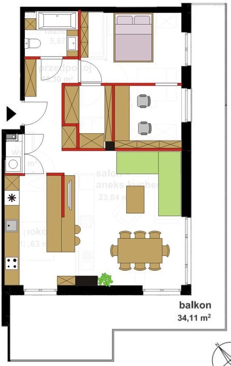 A osobna kuchnia w pokoju przy łazience wchodzi grę? Łazienkę można spokojnie skrócić. 1. No i taka propozycja. -