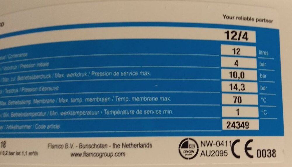 Dzięki za podpowiedź, zasobnik mam 150litrów a naczynie faktycznie 4 bary, 12litrów czyli w naczyniu musi być mniej niż w sieci (reduktorze) -