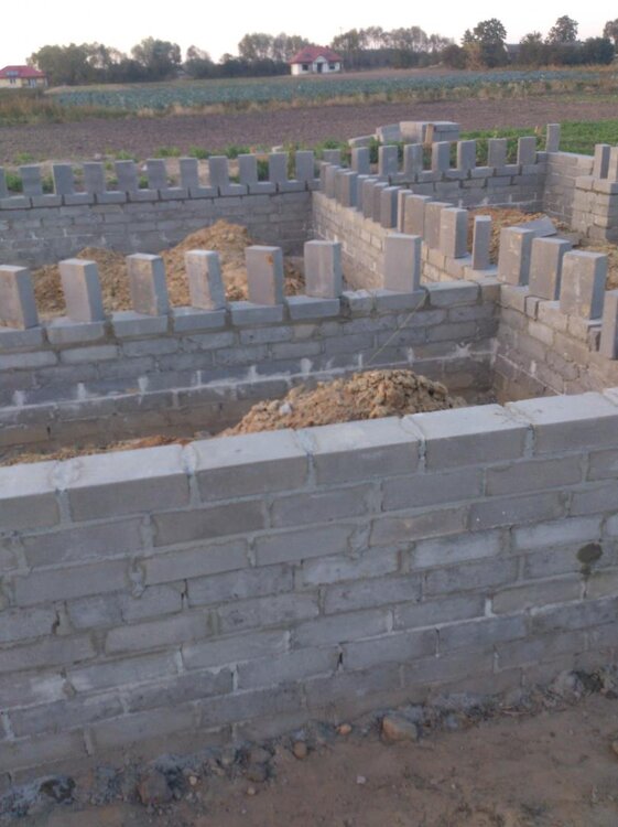 I kolejne: W tym poście na pierwszym zdjęciu widać także wymurowany fundament pod komin, ława w tym miejscu także była odpowiednio szersza i zbrojona. -