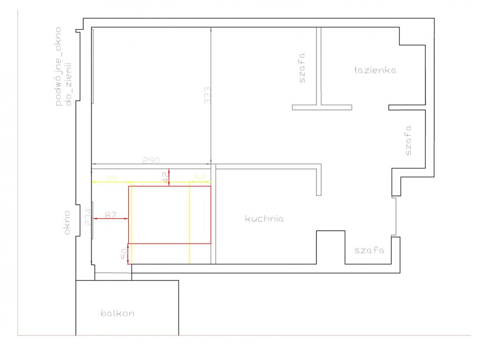 Też myślałem najpierw o takim rozwiązaniu , ale wychodziło mi (bez burzenia ścianki oddzielającej obecną kuchnię) albo wejście do sypialni przez kuchnię (co chyba nie jest dobrym rozwiązaniem), albo ciemna kuchnia: