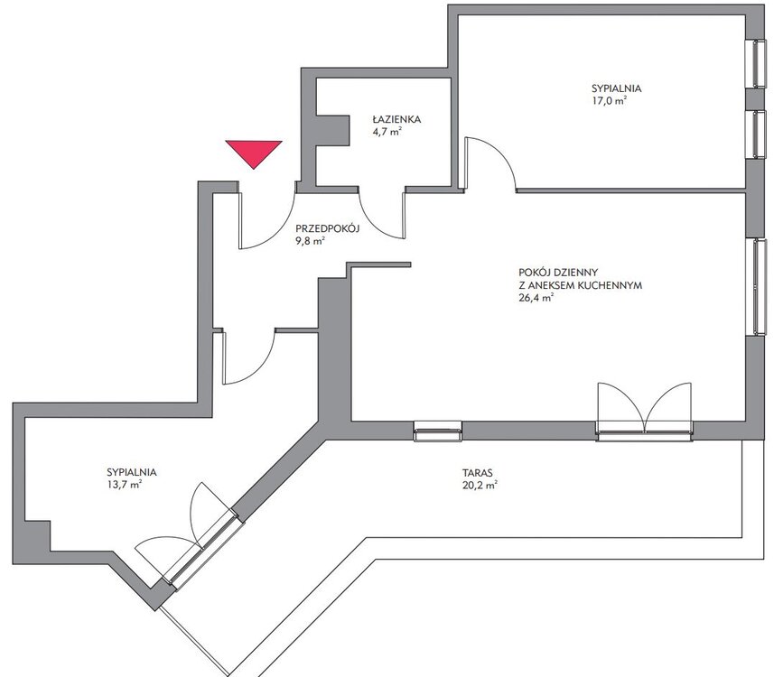 15. Witajcie, Jestem na ostatniej prostej jeśli chodzi o wybór mieszkania, które chce kupić. Faworytów w stawce pozostało kilku, ale chciałem Was zapytać (mnie niestety natura poskąpiła zmysłu aranżacyjnego) co sądzicie o poniższym rozkładzie (stan deweloperski - do wykończenia, orientacja płd-wsch, 7 piętro)? Czy wg Was da się tam coś fajnego zrobić? Póki co będę tam mieszkał sam, więc na początek wygodnie ma być jednej-dwóm osobom Wg mnie jest tu naprawdę spora sypialnia, z której ja bym wygospodarował nieco przestrzeni na powiększenie łazienki. Ta mała "ukośna" sypialnia przez dłuższy czas służyłaby mi za pokój "do pracy" (mimo, że na planie może nie wygląda zachęcajaco, to w przyszłości myslę, że spokojnie małe dziecko może sobie tam mieszkać ) W przedpokoju nie ma miejsca na szafę, ale wg mnie w sypialni (nawet po zabraniu jej częsci na łazienkę) i tak da radę wstawić jeszcze sporą szafę. Zastanawiam się też czy aneks nie jest trochę za mały i czy sprzętem kuchennym nie "naruszę" przestrzeni salonowej (marzy mi się np lodówka side-by-side). No i ten taras.. wg mnie duży plus! http://i129.photobucket.com/albums/p201/distroia/2.8.6%20v.1_zpszdjtknep.jpg~original Jak więc to widzicie? Da radę zrobić z tego fajne mieszkanie? Na pewno skorzystam z usług projektanta, ale i tak liczę na Wasze uwagi, wskazówki (w końcu najpierw muszę na coś się zdecydować), za które serdecznie z góry dziękuję! Pozdrawiam!
