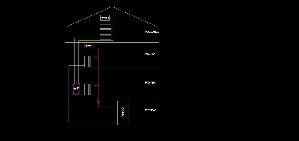 Witam; Stanąłem przed problemem przedłużenia instalacji CO. Problem w tym, że w obecnej instalacji zbiornik wyrównawczy jest dość nisko, natomiast jego podwyższenie nastręcza sporo kłopotów. Moje pytanie zatem - czy zrobienie tego za pomocą wymiennika ciepła płytowego(W.P.) będę w stanie to rozwiązać i czy będzie to działało(poprzez wprowadzenie 2-go obiegu z własnym zbiornikiem wyrównawczym(Z.W.1))? Pytam bo nigdzie nie znalazłem stricte takiego zastosowania tych wymienników. Jeśli to by zadziałało to jest ktoś w stanie powiedzieć jak dobrać moc takiego wymiennika do kaloryfera na poddaszu?(1:1?) dziękuje i pozdrawiam