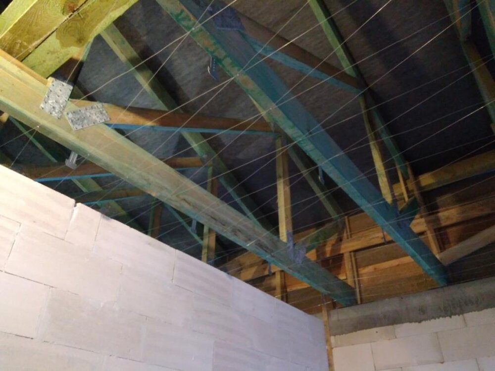 Żeby nie było problemów z prowadzeniem peszyli to zadrutowałem tez strop i poustawiałem wieszaki do pierwszej warstwy profili pod sufit podwieszany: Są też pierwsze kable Instalację prowadzę w peszlach niepalnych, bez puszek zbiorczych. -