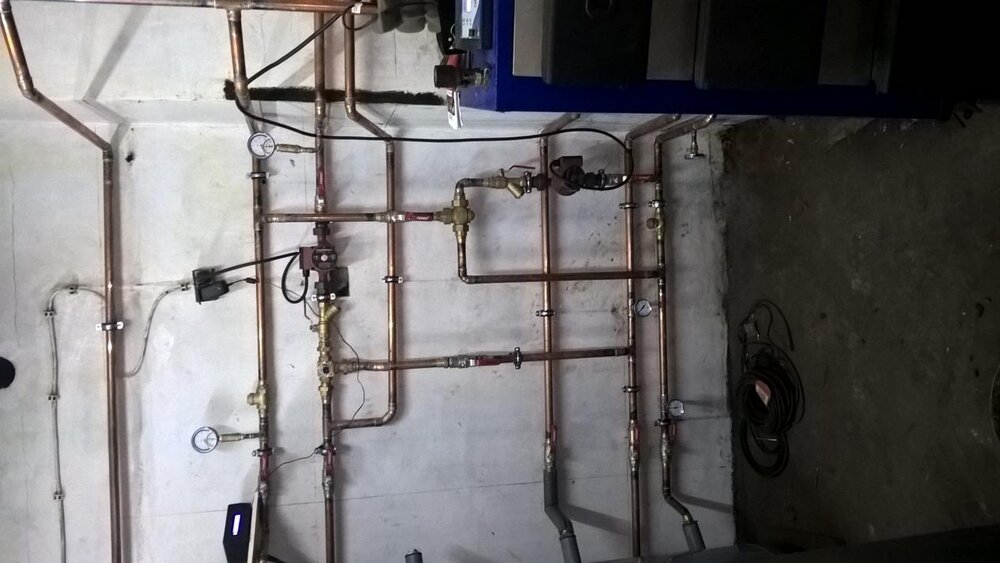 Kotłownie mam w budynku osobnym, połączoną z domem kanałem ok.2 m. Instalacja c.o. jest z miedzi a grzejniki panelowe typu Purmo. W kotłowni jest piec na węgiel,koks i drewno, bardzo przewymiarowany. Przywiozłem go z Niemiec,a służył do ogrzania niewielkiej kamienicy,ale był za darmo.
