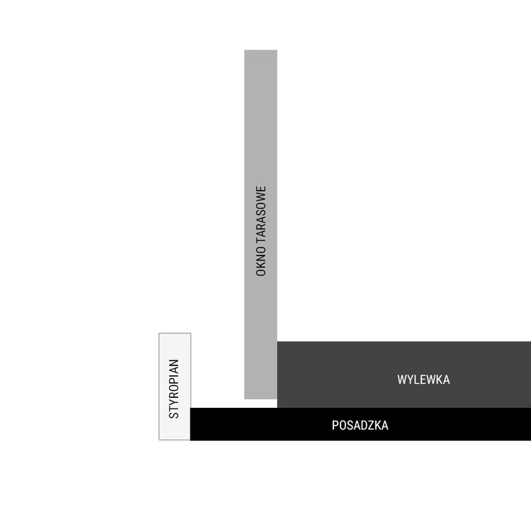 Za późno ale priorytetem było dla mnie wykończenie środka żeby można było zamieszkać bo musieliśmy się wyprowadzić. Będę się posługiwał hasłami z rysunku, wewnątrz między wylewką a posadzką oczywiście jest styropian ale ja pisałem o zewnętrznej części, która wystaje po za okno tarasowe. Okno jest w 3 miejscach osadzone na klinach. To są szeregówki więc z tym styropianem nie był mój zamysł choć podejrzewam, że jest to ocieplenie fundamentów i może dobrze by było go zostawić a środek (między tym styropianem a oknem) czymś tylko wypełnić.