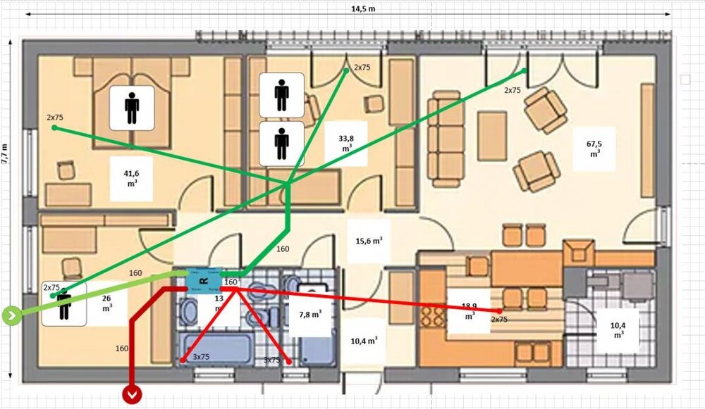 Przebrnąłem przez wątek ten i inne podobne. W efekcie wymodziłem załączony projekt rekuperacji parterówki 90 m2 z centralą 250 m3 na poddaszu nieużytkowym. Kanały PE 90 mm (zew.) pójdą w pomiędzy karton-gipsem a wełną izolacyjną. Centrala dostanie swoje iglo. Między centralą a skrzynkami rozdzielającymi spiro izolowane śr. 160 mm. Bardzo Was proszę o krytykę dzieła.- 4 925 odpowiedzi