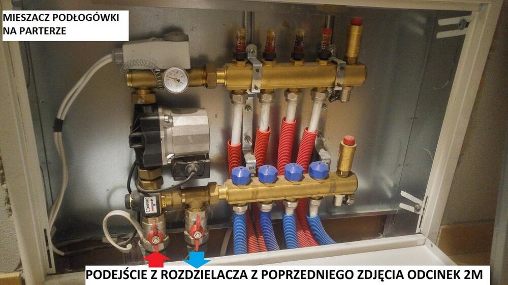 Zdjęcia dodałem w głównym poście. Dodatkowo uprzedzam ewentualne pytania o mieszacz: Kisan 86.35.00 (pompka WILO RS 15/6-3 (na drugim biegu, ale próbowałem też 1 i 3) zawór termostatyczny trójdrogowy ESBE VTA 322 Kvs 1,6 m3/h 35-60 st.C. (mam ustawione na „1” czyli 35 st.C.) (próbowałem też inne ustawienia) + listwa rozdzielająca Kisan (4 obwody po 100m) z rotametrami (rozkręcone na max) w mieszaczu- 21 odpowiedzi