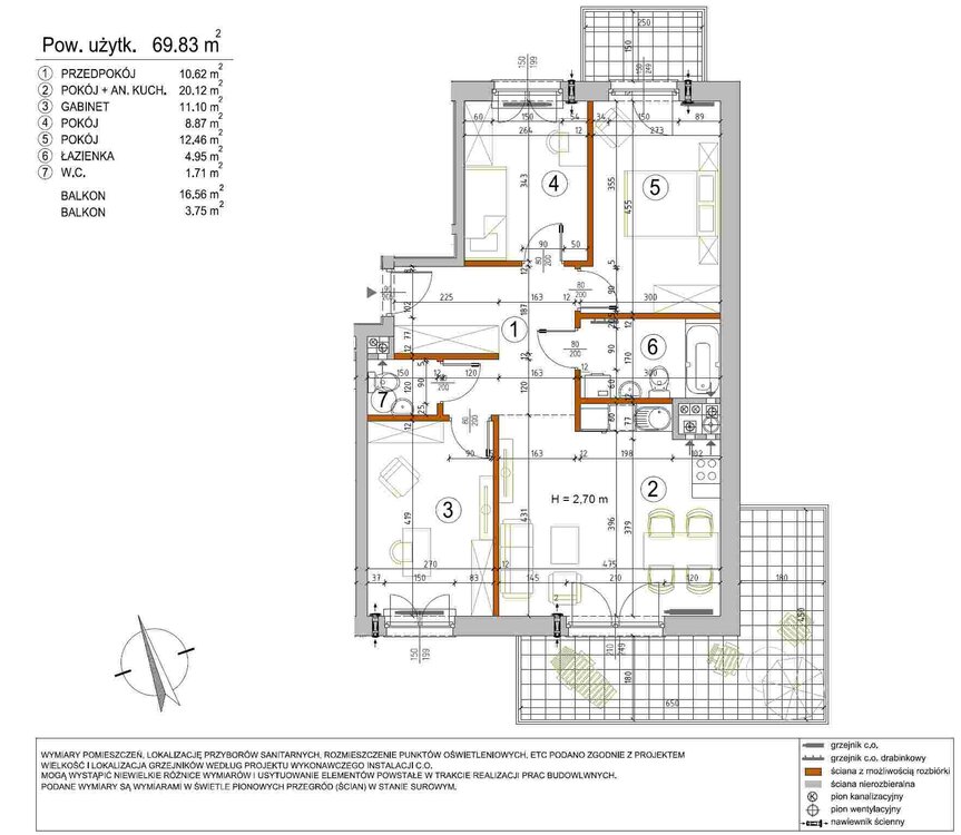 Chcemy całkowicie pozbyć się ściany między pomieszczeniem 2 a 3 (czyli stworzyć większy salon z aneksem kuchennym), tego jesteśmy pewni.