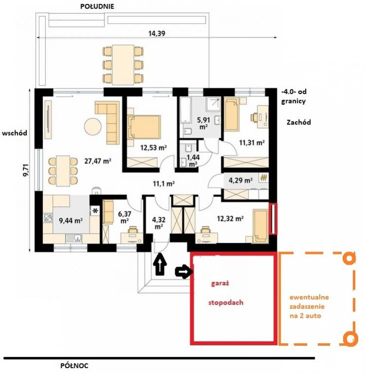 Dzień Dobry, mam problem z wyborem projektu domu. Działka 9 ar, wymiary 26,5 (front od północy) x34,7. Interesuje mnie dom parterowy, dla rodziny z dwójką dzieci. Maksymalna długość budynku 16,5 metrów. Preferowana szerokość do 16 metrów . Najlepiej w planie zbliżonym do kwadratu. Pow. zabudowy do 200 mkw –jak nieznacznie więcej to nic się nie stanie. Główne założenia 3 sypialnie 11-12 mkw. Salon około 30 mkw, Łazienka z oknem, kuchnia „z widokiem” na wejście, miejsce na gabinet, najlepiej przy garażu (minimum 6 mkw). Garaż na 1 auto- może być dolepiony do frontu budynku. Nie jestem fanem garderoby- szafa na całą ścianę wystarczy – ale jak jest to przeżyjemy. Opcjonalnie pralnia, Sypialnia rodziców „oddalona” od sypialni dzieci. Dopuszczam lekkie wydłużenie lub poszerzenie gotowca. Na tą chwile najbliżej mi do M14 murator, Klimek 2, antares-2t, Gwiazdka 5, N10 G1. Proszę o sugestie i inspiracje. [ATTACH=CONFIG]469004[/ATTACH]