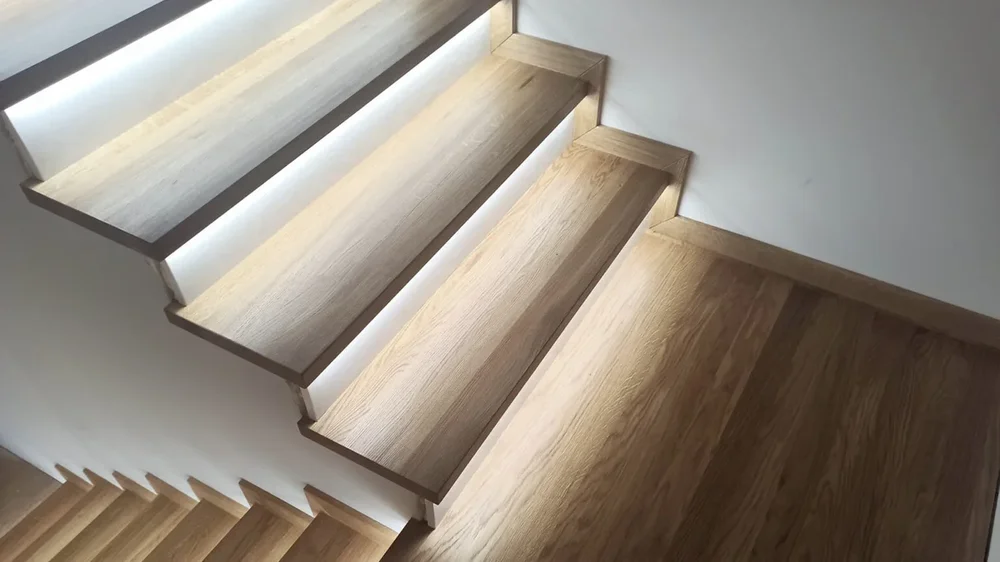 Witam. Budując dom udało mi się zrobić bardzo wiele rzeczy samodzielnie - z pomocą tego forum (w tym elektrykę, ocieplenie, całe poddasze...). Chciałbym jeszcze samodzielnie wykończyć schody. Poniższe zdjęcie obrazuje w 100% jak miałyby wyglądać: Jest kilka problemów: 1. Pierwszy schodek ma wysokość 6 cm, ostatni 27 cm, wszystkie pozostałe 19 cm. Potrzebuję więc podnieść wszystkie (poza najwyższym) łącznie o około 8 cm. Chciałbym to zrobić tak, żeby nie obciążać konstrukcji nadlewaniem betonu. Planuję więc kupić styrodur o gr. 4 cm i na to pójdzie trep gr. 4 cm. No i pierwszy zasadniczy problem - jak to zamocować? Wystarczy na piankę, kotwę lub jakiś mocny klej? Styrodur do betonu a potem trep drewniany do styro? Jak to wypoziomować w takiej sytuacji...? 2. Podstopnice (te białe) to są zwykłe płyty <chyba> MDF laminowane? Ma to jakąś sensowną żywotność? Te również na piankę/klej do betonu można? 3. Ile trep ma wystawać poza stopnice żeby zamontować w nim taśmę LED? No i w jaki sposób samodzielnie wyciąć "rowek" pod profil LED? 4. No i z tego co widzę to trepy sprzedawane są w stanie surowym. Czym najlepiej je wykończyć aby dały efekt matowy jak na załączonym obrazku? Uważam, że wbrew pozorom zrobienie takich schodów jest proste, a jak czytam wyceny na 20 tyś to aż boli... Proszę o pomoc.