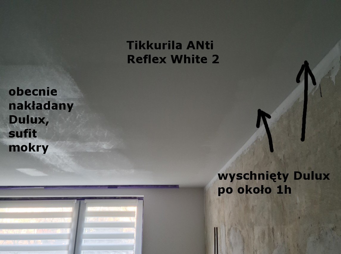 Malowane na poprzednich dwóch warstwach Duluxa Acryll Matt, która była śnieżnobiała. Niestety pozostawiła smugi, a Tikkurila miała być zbawieniem na ten problem.