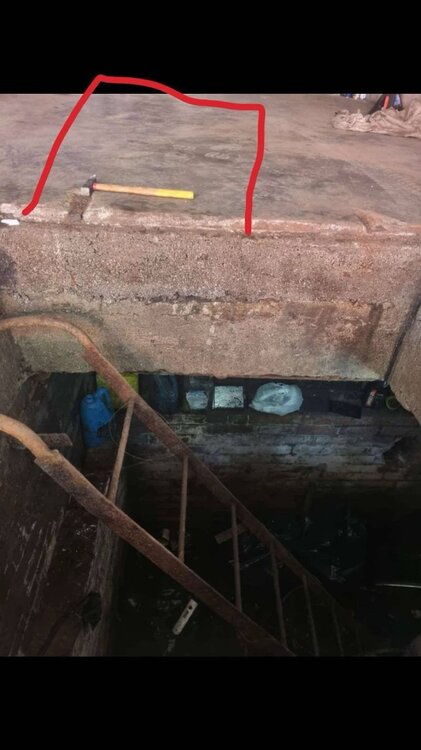Ten strop to podłoga w garażu w ciągu garażowym. Ktoś wcześniej zrobił tam dziurę i wykopał sobie piwnice na 3m głęboką. Otwór jest na 1m metr długi na 1,30 szeroki. Chcę go zwęzic do szerokości 80cm i wyciąć po 90cm długości jak na zdjęciu i na przeciwnej stronie.