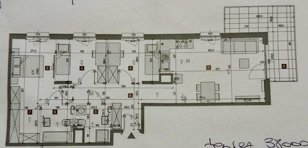 Załączam dwa zdjęcia mieszkania- jedno zdjęcie wydruku od dewelopera z wymiarami, drugie z jego strony internetowej- bardziej czytelne.
