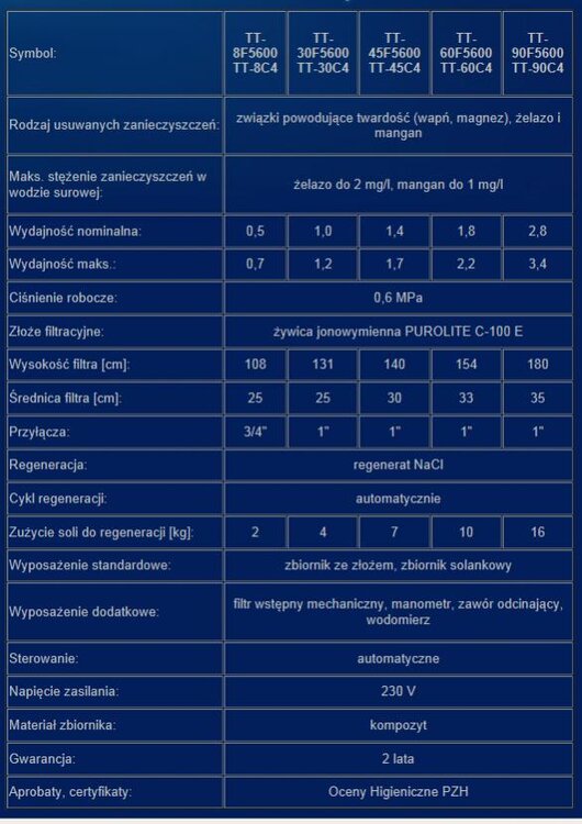 Mam do zaoferowania stacje uzdatniania wody w stanie idealnym. W skład zestawu wchodzi zmiękczacz TT-30F5600 widoczny na zdjęciach. Urządzenie regularnie serwisowane, dodatkowo mogę dosłać sprawozdania z przeprowadzanych co kwartał przeglądów serwisowych. Czas eksploatacji 3 lata, powodem demontażu jest podłączenie do instalacji wodociągowej. Możliwość oględzin po wcześniejszym kontakcie telefonicznym: 787 724 063 okolice Grodziska Mazowieckiego. Zmiękczacz: TT-30F5600 Cena nowego: 3277,95zł Cena jaka mnie interesuje 800zł + koszty wysyłki 200zł. Zmiękczacz można odnaleźć na allegro: http://allegro.pl/zmiekczacz-filtr-uzdatniacz-okazja-i3467303928.html