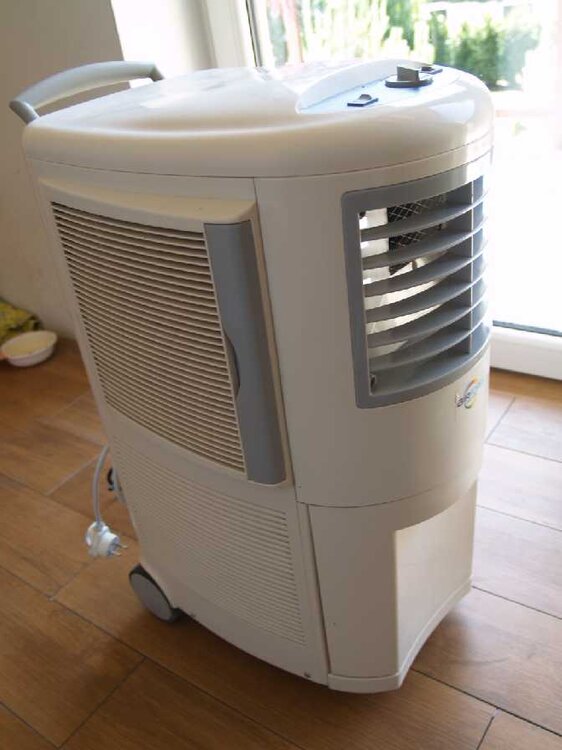 Witam! Sprzedam osuszacz powietrza wilgoci, został zakupiony do suszenia tynków, ale dużo przy nich nie pracował, bardziej wykorzystany został przy suszeniu wylewek. Przydał się również do suszenia ścian po malowaniu farbami. Super sprzęt przy osuszaniu piwnic. Osuszacz jest w bardzo dobrym stanie, działa jak należy, oczywiście posiada ślady użytkowania w postaci rysek czy zadrapań bo przecież nie stał jako ozdoba ) Wizualnie ma jedą wadę, niewielkie odkształcenie na pokrywie- inteligentnie postawiłam halogen 500 W i nieco odkształcił się plastik, ale nie ma to najmniejszego wpływu na pracę. W skrócie osuszacz ma 800 W, ściąga do 60 litrów wody na dobę ale to przy temperaturze 30 stopni (czyli im większa temperatura powietrza wewnątrz tym lepsza wydajność) pojemnik na wodę z czujnikiem zapełnienia odprowadzenie do kanalizacji! Cena chciałam bym 700 zł (kosztował ponad 2x tyle) ale oczywiście do negocjacji ........... ) Najchętniej odbiór osobisty! Osuszacz waży ok 30 kg. , aaaaa ważne musi być transportowany w pionie tak jak lodówki bo to podobna technologia. Oczywiście za dodatkową opłatą mogę dostarczyć sprzęt w rejonie Piaseczna, Warszawy i okolic Kontakt jak zwykle e-mailowy,