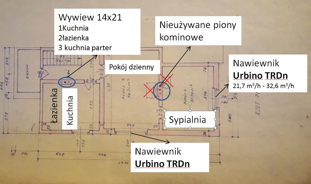 Witam mam problem z nadmierną wilgocią domu (60-70%), dom stary część z lat 30 i dobudowana niższa część w 60, dach płaski, problemy z wilgocią na piętrze, dom ocieplony wełna 15, okna nowe 2 szybowe z ciepłymi ramkami, nawiewniki w sypialni i pokoju dziennym otwarte max 24h/dobę, wyciąg kominem w kuchni/ łazience, do kuchni nie ma drzwi pozostałe pokoje z zachowaniem przestrzeni pod drzwiami ale w większości czasu otwarte na max, temp w pokojach 21-22, ogrzewanie piec kondesacyjny mimo nawiewników wilgoć się utrzymuje - otwarcie okna powoduje spadek wilgotności, nie wiem czy problem za mały przepływ nawiewników czy może to że komin który wyciąga jest niżej niz dobudowana część budynku jest jeszcze jedne pion kominowy niewykorzystany - tak myślałem czy nie zrobić kratki wyciągowej w sypialni tym przewodem kominowym ale czy wtedy nie zaburzy to całkiem przepływu grawitacji rekuperacja nie wchodzi w grę bo to ostatnia kondygnacja dach płaski czy można coś zrobić - wietrzenie doraźne pomaga na chwilę a i mieszkam w okolicy gdzie zapachy wręcz zabijają przy wietrzeniu