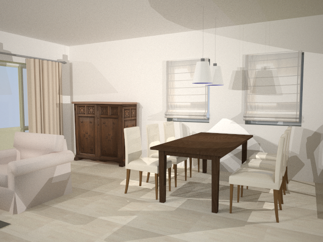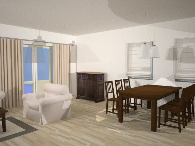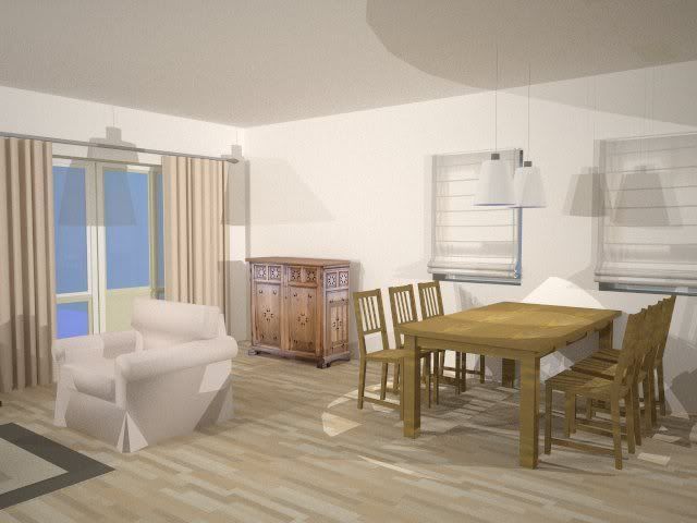 Efka, jeżeli chodzi o podłogę to 1,2 i 3 to to samo tylko przy kopiowaniu powielił się cień dlatego wygląda to tak jakby tam był olbrzymi gres. Ale uparłem się na jesion bielony (zgadnij od kogo ściągałem) na co Złociutka przystała z ochotą no i mam jasne podłogi.