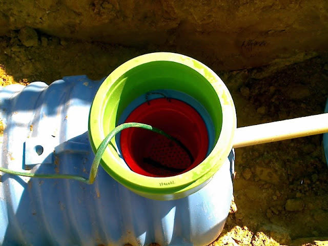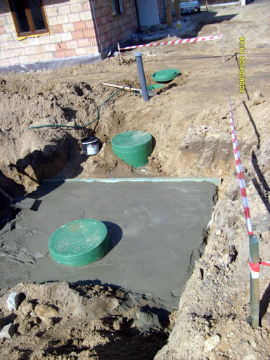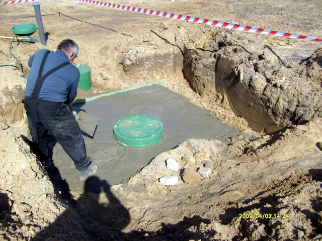 Martinezio 05.04.2009 11:05 Autor Zgłoś naruszenie Udostępnij Napisano 5 Kwietnia 2009 Kolejne etapy prac zakończone - elektryka wykonana w 100%, łącznie z odgromówką, - podłączona woda (zalicznikowana, zaplombowana, umowa spisana, fananana....) - zainstalowana oczyszczalnia, ale ze względu na brak użytkowników - tylko zalana wodą, jeszcze nie uruchomiona i bakteryjki jeszcze nie wrzucone (szczegóły techniczne poniżej, łącznie z fotogaleryjką), - ułożona do końca papa na chudziaku - pozostało tylko zrobienie kołnierzy w narożnikach, oraz połatanie tego, co wystaje spod ścian, a zostało uszkodzone w czasie robót wcześniejszych (kilka fotek z układania później, bo gdzieś mi foty wsiąkły ), - uporządkowałem w końcu z teściem drewno budowlane (a właściwie kantówki), bo leżały na ziemii i piły sobie wilgoć aż miło - teraz ułożyliśmy taki ładny sążek i drewno powinno wyschnąć ładnie Plany na najbliższy czas: - przede wszystkim ocieplenie elewacji i zrobienie podbitki, oraz zamontowanie rur spustowych do rynien, - wysprzątanie poddasza i ułożenie styro na podłogi, - dokończenie instalacji przez hydrę (ogrzewanie). Ok, to teraz trochę szczegółów technicznych :> Może najpierw o oczyszczalni co nieco. Jak pewnie wspominałem wcześniej, zdecydowaliśmy się na oczyszczalnię JPR System w wersji biologicznej, czyli Fil d'Eau (czyt. fil do ) z dodatkowym zbiornikiem na wodę użytkową. Na końcu układu, ze względu na gliniasto-ilasty grunt, zostało zamontowne poletko rozsączające o pojemności 300l, dodatkowo obsypane dookoła grubym żwirem, który nam został po budowie. Długość całego układu wynosi ok. 8m, oczywiście w układzie liniowym. Do złoża biologicznego dodatkowo musiał zostać poprowadzony rurociąg z napowietrzeniem - powietrze jest pompowane specjalnym kompresorem, który został umiejscowiony w kotłowni. Na ostatnim w układzie zbiorniku została wykonana płyta żelbetowa (wykorzystaliśmy druty pozostałe z budowy), bo zbiornik latem w większości będzie stał pusty, lub częściowo tylko napełniony, a ponieważ spadek terenu jest w przeciwną stronę do spadku układu oczyszczalni, to ostatni zbiornik wylądował 1m pod ziemią i napór na niego jest dość spory. Kilka fotek z montażu: http://lh4.ggpht.com/_4STjwinLOH8/SdiIcyUch2I/AAAAAAAAAp8/LwRKhCaLPZo/s200/a02-04-09_1128.jpg http://lh4.ggpht.com/_4STjwinLOH8/SdiIdHabVSI/AAAAAAAAAqE/bxBJnFGYGTw/s200/a02-04-09_1129.jpg To wykop pod rurociąg napowietrzający. http://lh3.ggpht.com/_4STjwinLOH8/SdiIdQvJw2I/AAAAAAAAAqM/P9m-1ILS7FA/s200/a02-04-09_1130.jpg http://lh5.ggpht.com/_4STjwinLOH8/SdiIdc_bobI/AAAAAAAAAqU/7MhyslAEdxg/s200/a02-04-09_1131.jpg Wykonawca w trakcie kontroli posadowienia biobloku, oraz doprowadzenie ścieków. http://lh5.ggpht.com/_4STjwinLOH8/SdiIddVjqwI/AAAAAAAAAqc/vDTQflGUfdc/s200/a02-04-09_1132.jpg http://lh6.ggpht.com/_4STjwinLOH8/SdiPV-oiVjI/AAAAAAAAAqk/5NlOYH3bpGc/s200/a02-04-09_1134.jpg To bioblok oraz kosz na filtr osadnika wstępnego. http://lh3.ggpht.com/_4STjwinLOH8/SdiPWT-x_AI/AAAAAAAAAqs/oJsQJic96vA/s128/a02-04-09_1133.jpg http://lh6.ggpht.com/_4STjwinLOH8/Sdikd-T6ivI/AAAAAAAAArM/gR8vaYvhVuA/s200/aS6301516.JPG Tabliczka znamionowa biobloku, oraz kosz po napełnieniu go puzzolaną (filtrem z kruszywa wulkanicznego) http://lh5.ggpht.com/_4STjwinLOH8/SdikcskWrMI/AAAAAAAAAq0/PqljQLNSrBY/s200/aS6301513.JPG http://lh3.ggpht.com/_4STjwinLOH8/SdikdQFNFhI/AAAAAAAAAq8/L0gVUB15mNo/s200/aS6301514.JPG Płyta nad ostatnim zbiornikiem w trakcie wykonywania, oraz widok ogólny zestawu. Niestety, ale nie udało mi się ustrzelić foty z pakietem, ale wykonawca też zrobił sobie kilka zdjęć i obiecał mi je przesłać. Jak tylko je dostanę, to wrzucę na forum PS: znalazłem fotki z układania papy - były w aparacie Muszę je tylko przetworzyć do postaci zjadliwej przez weba Cytuj Odnośnik do komentarza https://forum.murator.pl/topic/108160-prymulkowa-przygoda/page/4/#findComment-3184138 Udostępnij na innych stronach Więcej opcji udostępniania