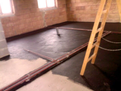 Tak wygląda moja podłoga - hm posadzka zatarta w domku... Hm niedługo stanę i pewnie powiem: - o jak nisko są okna;)