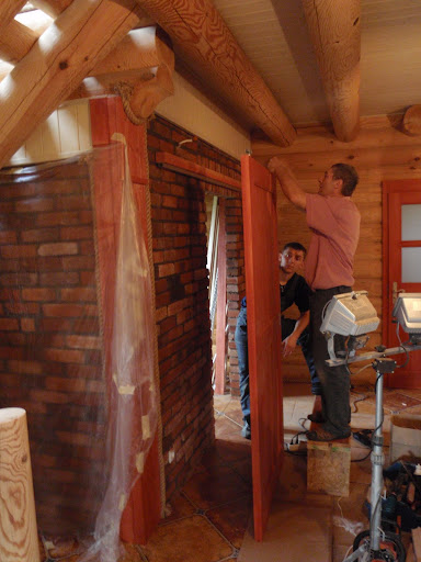mypink 29.08.2010 20:57 Autor Zgłoś naruszenie Udostępnij Napisano 29 Sierpnia 2010 Witam wszystkich miłych gości naszego dziennika.Dziś wypadło, że kronikarzem wydarzeń na budowie jest inwestor. A więc armagedon zakończonego właśnie tygodnia (w czwartek przez budowę przewinęło się 6 różnych ekip) rozpocznę od najszybszej akcji, czyli posadzki w garażu. Wpadli niezapowiedziani, posprzątali gratis, nasypali co trzeba, wygładzili i uciekli (po wypłacie oczywiście!), a w trakcie wyglądało to tak: http://lh5.ggpht.com/_ZK1AlydLGcI/THrBSxVH0hI/AAAAAAAAA7w/vrSRlxiWB6c/s640/P8263875.JPG W ten sam dzień cykliniarz wykańczał swoją część, a dokładnie gładził schody: http://lh6.ggpht.com/_ZK1AlydLGcI/THrBiXAmttI/AAAAAAAAA8A/aA8Zzoz1qAY/s512/P8263888.JPG Największą zadymę zrobiła jednak (chociaż w sumie najmniej brudząca ze wszystkich) ekipa "drzwiowa". Przyjechali i na dobry początek rozłożyli się w salonie: http://lh6.ggpht.com/_ZK1AlydLGcI/THrBQ3HYjII/AAAAAAAAA7s/kKD-Fd3TiEA/s640/P8263863.JPG Kierownik prac szybko wpadł w szał montażu a pistolet był jego najważniejszym orężem w tej walce .. na szczęście szaleństwo było niegroźne bo pistolet był na piankę: http://lh5.ggpht.com/_ZK1AlydLGcI/THrBVBpiWfI/AAAAAAAAA70/cNfzvdSF_WM/s512/P8263876.JPG Chlubą Inwestorki okazały się drzwi do łazienki: http://lh6.ggpht.com/_ZK1AlydLGcI/THrBb5T0jnI/AAAAAAAAA74/wWkuFex-iNg/s512/P8263884.JPG .. i nie można przy tym pominąć małego detalu niezbędnego w niemalże każdych drzwiach:http://lh6.ggpht.com/_ZK1AlydLGcI/THrBgsbBNjI/AAAAAAAAA78/ET9bECGLfLc/s512/P8263885.JPG Efekt końcowy na górze prezentuje się następująco: http://lh4.ggpht.com/_ZK1AlydLGcI/THrBsTTUAgI/AAAAAAAAA8M/OA1RIZH9B2E/s512/P8273894.JPG .. i z drugiej strony: http://lh6.ggpht.com/_ZK1AlydLGcI/THrBwzVIM8I/AAAAAAAAA8U/LWQmObE8iLA/s512/P8273899.JPG Po zakończeniu góry ekipa przeniosła się na dół. Tu okazało się, ze kierownik ma do pomocy cztery bardzo pomocne dłonie (pomijając oczywiście jego niezastąpione dwie osobiste).: http://lh4.ggpht.com/_ZK1AlydLGcI/THrBpLkZUQI/AAAAAAAAA8I/bk2xaR0juyM/s512/P8263891.JPG .. te kolejne przy przy kolejnej 'trumnie':http://lh4.ggpht.com/_ZK1AlydLGcI/THrBkUdY8aI/AAAAAAAAA8E/gdxMJaM10Sk/s512/P8263890.JPG Cytuj Odnośnik do komentarza https://forum.murator.pl/topic/129400-nasz-wymarzony-dom-z-bali/page/3/#findComment-4257090 Udostępnij na innych stronach Więcej opcji udostępniania