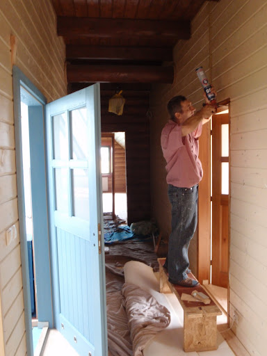 mypink 17.04.2010 21:05 Autor Zgłoś naruszenie Udostępnij Napisano 17 Kwietnia 2010 W chałupce baardzo powolutku, ale wciąż się coś dzieje. Tym razem w obroty poszła dolna łazienka, powstały stelaże pod bardzo ważne siedziska w domu http://lh6.ggpht.com/_ZK1AlydLGcI/S8obc4YoYFI/AAAAAAAAArs/zGvT0vkZZLc/s640/P4102578.JPG Kuzyn narzeźbił się wycięć pod bale (zajęło mu to cały dzień), ale i tak trzeba będzie to zlikwidować i podciąć na prosto, wzdłuż profilu, bo się "zapomniało", że to dom drewniany i bale będą osiadać, a wtedy płytę szlag trafi Tak nawiasem mówiąc to nasza jedyna płyta G-K w całym domu http://lh6.ggpht.com/_ZK1AlydLGcI/S8obd-FA5ZI/AAAAAAAAArw/lpo13_5Ejjs/s640/P4102587.JPG http://lh4.ggpht.com/_ZK1AlydLGcI/S8obex_ONTI/AAAAAAAAAr0/nSFCChseFoA/s512/P4102588.JPG No i ostatnimi czasy nasza "ulubiona" czynność, czyli czary mary z farbą Tym razem opędzlowujemy sypialnię. Człowiek się nad czymś głęboko zamyśli a tu mu znienacka zdjęcie strzelają. http://lh6.ggpht.com/_ZK1AlydLGcI/S8obfa9KGaI/AAAAAAAAAr4/bxgNKjnEgaM/s640/P4172597.JPG A poniżej z serii "wygibasy na drabinie" Inwestorka wymyśliła sobie, że sypialnia będzie biało-niebieska (już się biała rama łóżka do kompletu u stolarza zbija ) http://lh5.ggpht.com/_ZK1AlydLGcI/S8obgeFZRyI/AAAAAAAAAsA/5F_XIy1HZrg/s512/P4172601.JPG Cytuj Odnośnik do komentarza https://forum.murator.pl/topic/129400-nasz-wymarzony-dom-z-bali/page/3/#findComment-4068778 Udostępnij na innych stronach Więcej opcji udostępniania