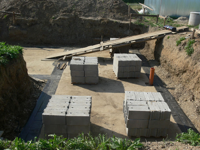 W sobotę przyszła koparka i mamy na działce 2 metrowy dół czyli naszą przyszłą piwnicę:) szalunki są w trakcie pracy. A dziś znowu pada i prace ustały jak się uda to w tym tygodniu lejemy beton na fundamety:)