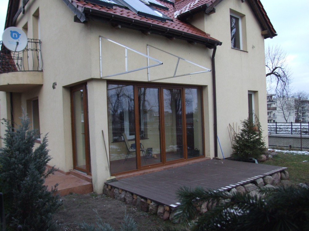 perm 30.12.2014 09:22 Autor Zgłoś naruszenie Udostępnij Napisano 30 Grudnia 2014 ad1. mam takie coś 2 sztuki, w pierwszym oraz w drugim domku, wykonane z poliwęglanu falistego, czyli tego elastycznego odpornego na grad i śnieg ad2. poliwęglanu komorowego unikaj bo jest zbyt sztywny, grad wybija w nim dziury ad3. szkła też staraj się unikać, jest za ciężkie, żeby zdjąć taki panel boczny będziesz potrzebować dźwigu ad4. śnieg lubi tam zalegać bardzo długo, także naszykuj się na duże zacienienie w grudniu i styczniu ad5. w marcu jak wyjdzie słoneczko śnieg zjeżdża sam i robi się sympatycznie ad6. co do temperatur zimą to powietrze ma znikomą pojemność cieplną, czyli jak wyjdzie słoneczko to błyskawicznie robi się ciepło, a jak zajdzie to od razu robi się zimno ad7. co do temperatur w lecie, jak wszystko jest zasłonięte to w lipcu bez problemu zrobi się tam +50, ale jak pozdejmujesz boczki to od razu się schłodzi ad8. poliwęglan sam się myje, wystarczy mocniejsza ulewa, ale w jednym miejscu mam zaciek od rdzy z blaszanej wstawki, niczym nie schodzi, tak więc radzę unikać łączenia blaszanych dachów z poliwęglanem ad9. co do kosztów, jeśli robocizna będzie twoja w całości to poniżej 8 tyś się znajdziesz za polieglan, albo w okolicach 40 tyś za szkło Dzięki za uwagi. Poliwęglanu nie chcę w ogóle. Cena samego szkła, jak liczyłem to, około 10 tyś (mniej więcej 120 zł/m2) korzystając ze znajomości i szkła drugiego sortu. Jeżeli nie uda mi się załatwić takiego taniego szkła zrezygnuję z przeszklenia dachu. 10 tyś za konstrukcję jest do osiągnięcia, pod warunkiem własnoręcznej obróbki tarcicy. Tanie to nie jest ale też rozmiary są spore. Boczki będą na zawiasach, szerokości do 90 cm by nie były zbyt ciężkie. Takie drzwi. Środkowa część pozostanie zamknięta. Co do temperatur to liczę na to, że nagrzeje się również to co w środku. Nie liczę na cud ale bym nie musiał tam cały czas grzać. Cytuj Odnośnik do komentarza https://forum.murator.pl/topic/196408-ogr%C3%B3d-zimowy-element-domu-energooszcz%C4%99dnego/page/3/#findComment-6688099 Udostępnij na innych stronach Więcej opcji udostępniania