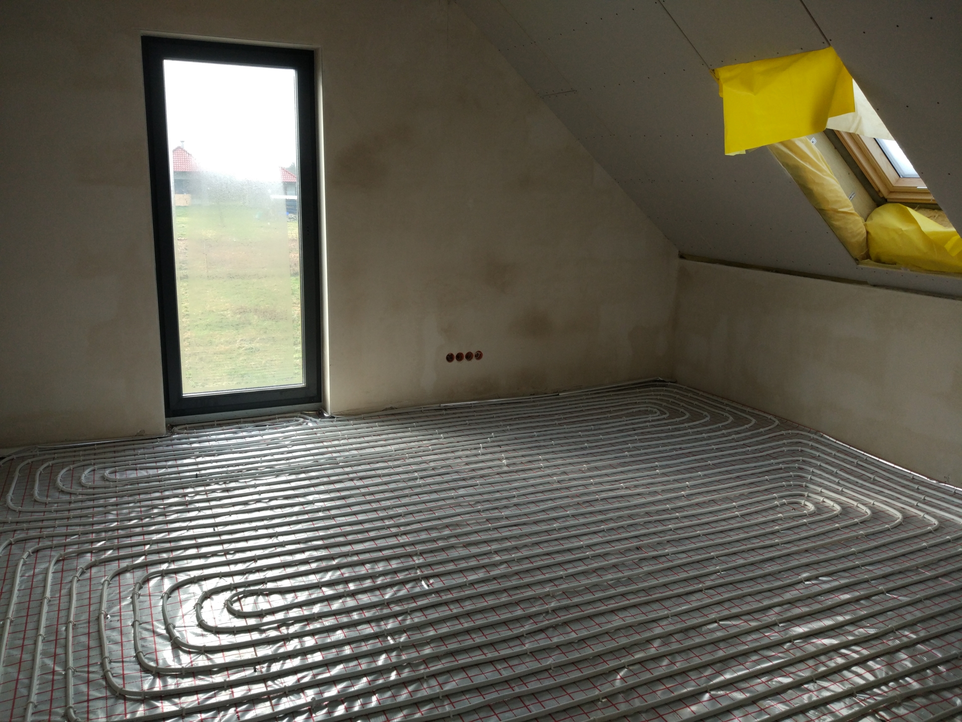 Kriss7 22.01.2018 07:19 Autor Zgłoś naruszenie Udostępnij Napisano 22 Stycznia 2018 Tak ekipe od wylewek mam z Wrocławia. Zobaczymy co z tego wyjdzie. W czwartek przyjechał styropian i mogliśmy ze szwagrem zacząć działać przy podłogówce. Ja układałem styropian i folie, a on śmigał z rozwijaniem rur. Wieczór piątkowy i cała sobota przyniosła niezły efekt w postaci skonćzenia okolo 80% poddasza. Podłogówka jest układana w nastepujący sposób: -pokoje,salon, kuchnia - co 10cm -lazienki, pralnia co - 7,5cm -garderoba, wiatrołap, kotłownia - 10cm lub 12,5cm. -obiegi nie wieksze niż 80m - na poddaszu bedzie 14 podejść w rozdzielaczu i na parterze podobnie Mamy zapas rury viessmanna w cenie producenta, wiec można zaszaleć Co do rozkładania styro, szwagier sie ze mnie śmiał że za cały dzień roboty (rozłożyłem okolo 80m2 - jedna wartswa), zarobiłbym okolo 160-200zł (koszt to 2,3zł/m2). On w tym czasie zarobiłby jakieś 2000zł za rozwijanie węża... Temat podłogówki konczymy za dwa weekendy i wtedy bede umawiał wylewki. Tak to wygąda: Cytuj Odnośnik do komentarza https://forum.murator.pl/topic/230194-indywidualny-prosty-pod-wroc%C5%82awiem/page/9/#findComment-7472171 Udostępnij na innych stronach Więcej opcji udostępniania