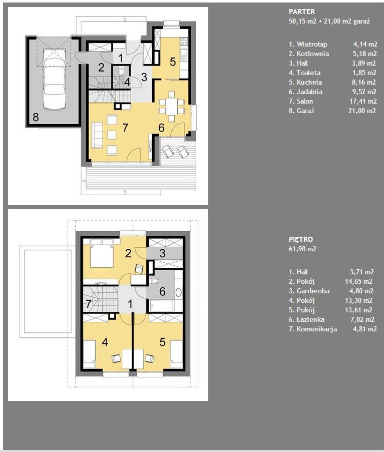 Marcin34_Śl 22.11.2017 11:32 Zgłoś naruszenie Udostępnij Napisano 22 Listopada 2017 Najlepiej jak chcesz się za wszystkim zmieścći to wywal garaż... ja tak zrobiłem i jestem zadowolony. Fajna kuchnia z wyspą, funkcjonalna to min. 20m2 jak pisał Cypryski.Jak nie będzie na parterze pokoju (gośninnego) to wystarczy WC bez łazienki.Jak rodzina 2+2 to konieczne dwie łazienki na piętrze.Garaż - masz słuszne uwagi, dlatego w domach energooszczędnych wogóle nie powinno być garaży albo dostawione do budynkuPamiętaj, że klatka schodowa zajmuje z 6-7 m2.Już ci się zrobiło: salon 30m, kuchnia 15, wiatrołap 5, pom. gos.5, WC2, komunikacja 5 i klatka schodowa 6, garaż 20m = 85 metrów parter bez pokoiku *2 czyli 170 metrów po podłogach. Cytuj Odnośnik do komentarza https://forum.murator.pl/topic/233938-pytania-na-pocz%C4%85tek/#findComment-7437574 Udostępnij na innych stronach Więcej opcji udostępniania