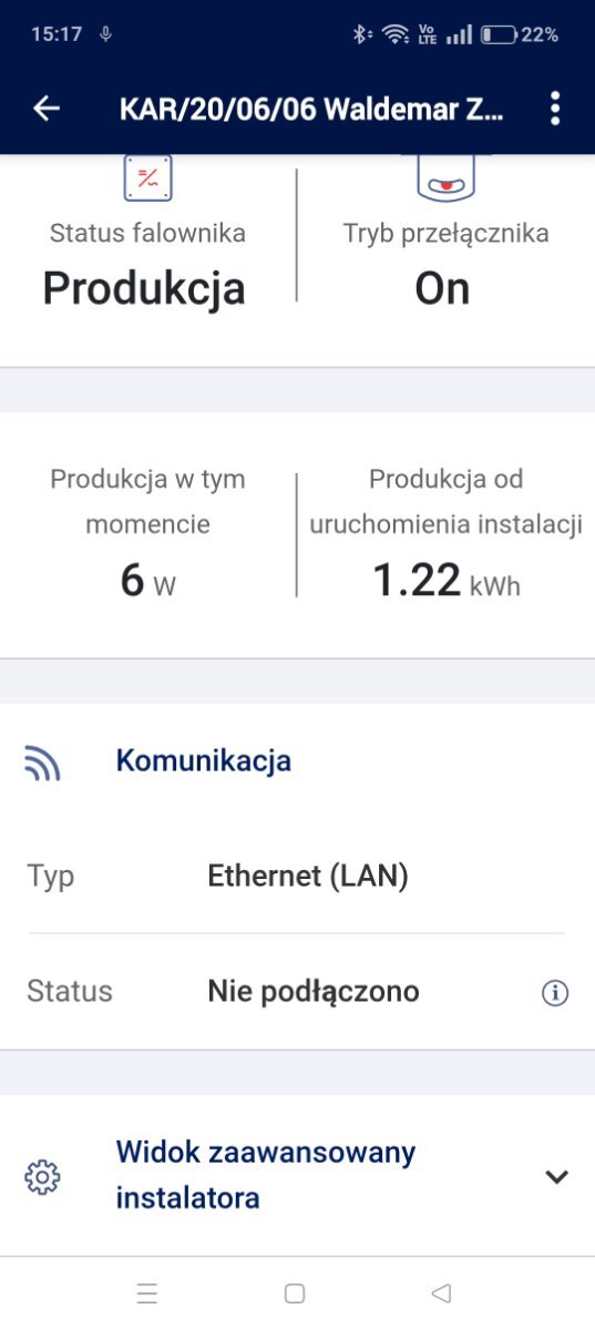 pyra100 24.11.2025 14:51 Zgłoś naruszenie Udostępnij Napisano 7 godzin temu Witam Mam mały problem z podłączeniem falownika pod sieć wifi. Kilka dni temu został wymieniony falownik i dołożone panele. Informowałem instalatora, iż nie podłączył go do sieci Wi-Fi, ale twierdził uparcie, iż wszystko jest ok. I czekamy na"serwis" solara, który to musi go zdalnie skonfigurować. Tłumaczyłem, iż Nik go nie skonfiguruje, gdyż nie jest podłączony do Wi-Fi. Dzisiaj połączyłem się z falownikiem i sprawdziłem w aplikacji status falownika i widzę coś takiego komunikacja Ethernet (LAN) status nie podłączono. Czy ja nie będąc instalatorem mogę coś z tym zrobić? Proszę o pomoc Cytuj Odnośnik do komentarza https://forum.murator.pl/topic/296787-falownik-solaredge-pod%C5%82%C4%85czenie-pod-wifi/ Udostępnij na innych stronach Więcej opcji udostępniania