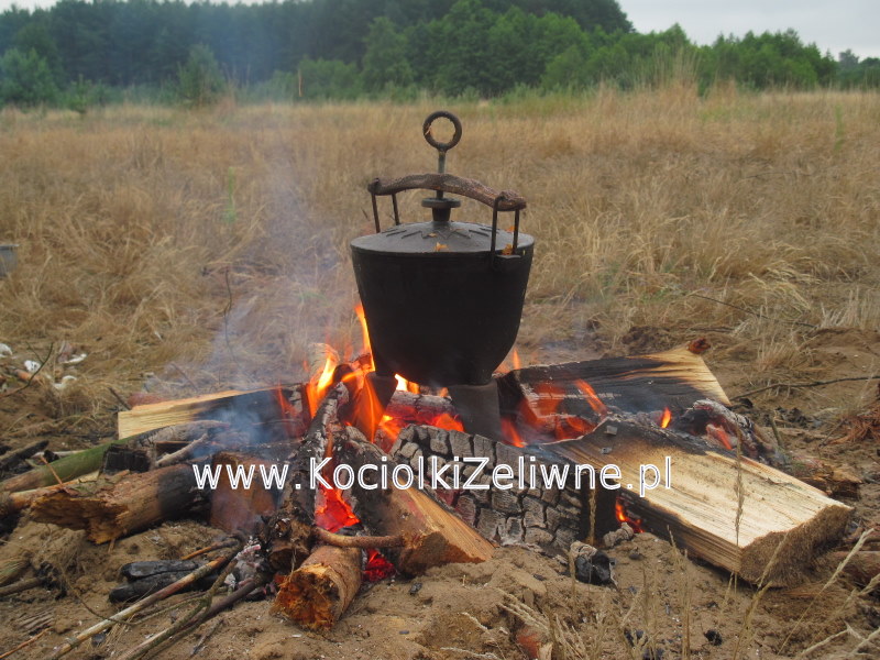 ... a kociołek z fotki ma nóżki dokręcane (i można go spokojnie postawić w ogniskowym żarze) :)